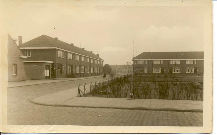 Ca. 1940 Hartmanplein met slagerij op hoek Rijnweg