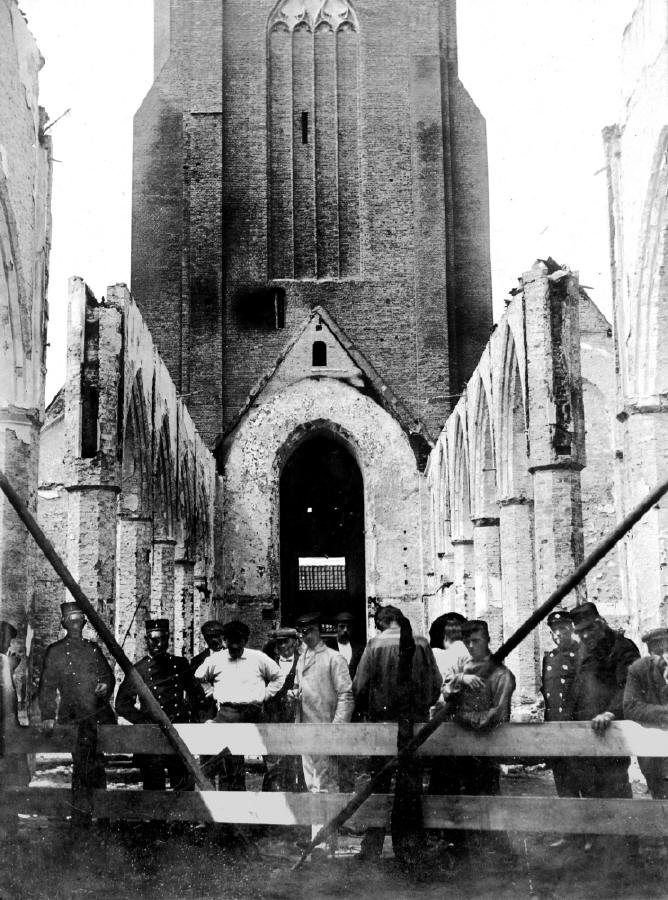 Monsterse toren in de steigers na de brand in 1901